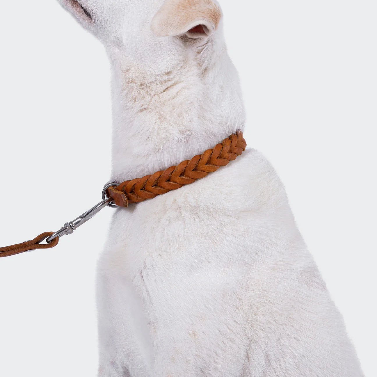Elegantní a nadčasový obojek z kolekce Central Park v teplém karamelovém odstínu je vyroben z mastné (greased) hovězí kůže s propracovaným ručně pleteným detailem. Díky své přirozené měkkosti a odolnosti je ideální pro každodenní nošení a zároveň stylovým doplňkem pro každého psa – od malých až po velká plemena.
