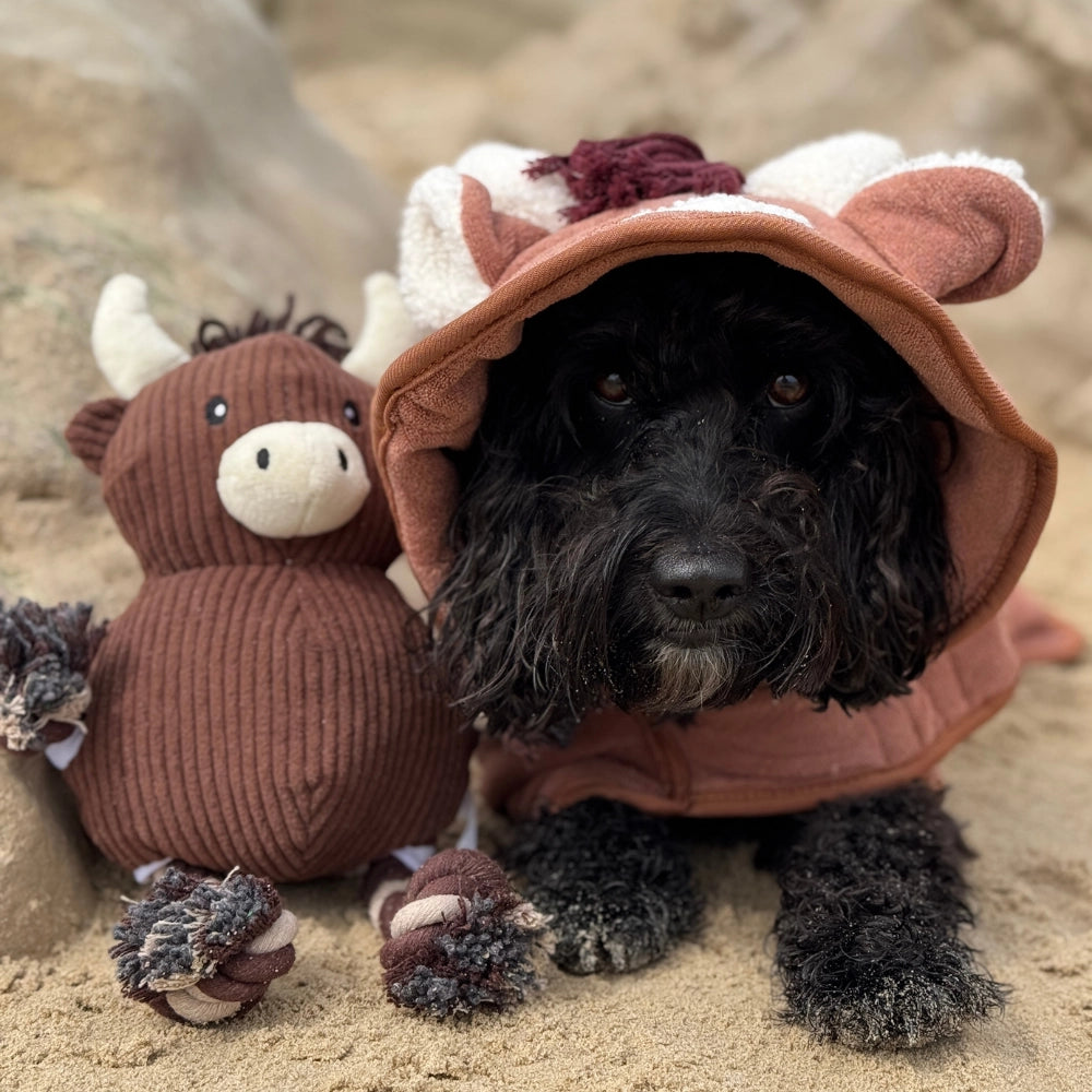 Seznamte se s Haroldem, naším sušícím županem ve stylu Highland Cow – tím nejpohodlnějším a nejstylovějším způsobem, jak udržet vašeho pejska v suchu a teple po koupeli nebo po venkovních dobrodružstvích.