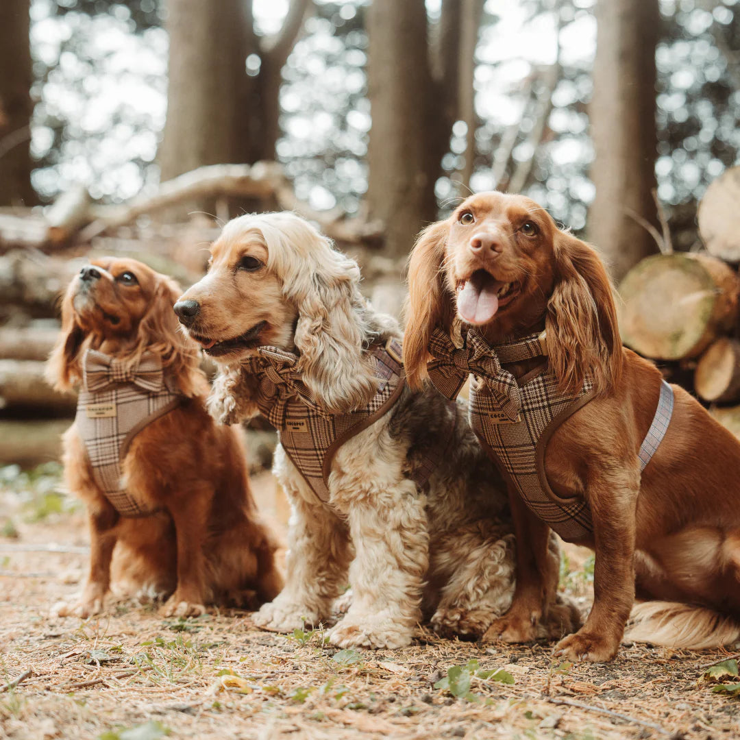 Dodejte procházkám venkovský šarm s naším Pup Plaid postrojem! Trendy tweedový vzhled v kombinaci s klasickým tartanovým vzorem v čokoládově hnědé barvě z něj dělá perfektní doplněk pro stylovou vycházku. A díky bezpečnostní pojistce na přezce se budete cítit jistě, že je váš pejsek vždy v bezpečí.