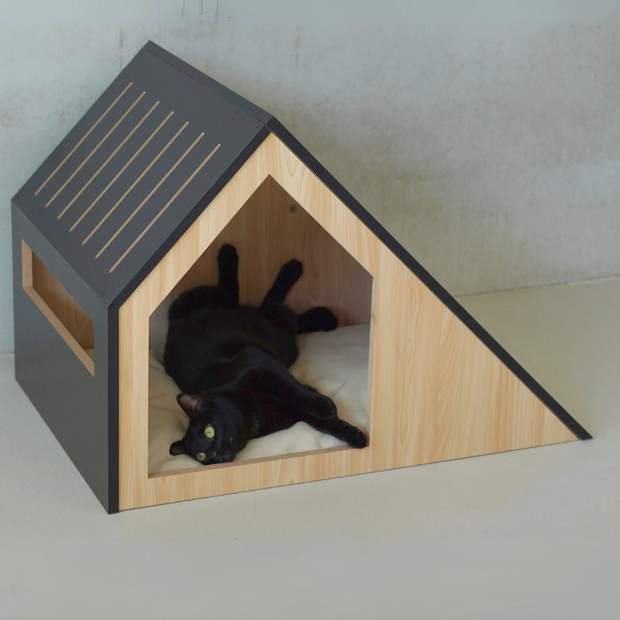 Dopřejte kočce nebo malému psíkovi jejich vlastní bezpečné a útulné místo. Kočky milují své rituály a potřebují soukromý prostor, kde se mohou schovat, odpočívat, hrát si nebo spát. Tento elegantní dřevěný domeček splní všechny jejich potřeby – a zároveň skvěle doplní váš interiér.
